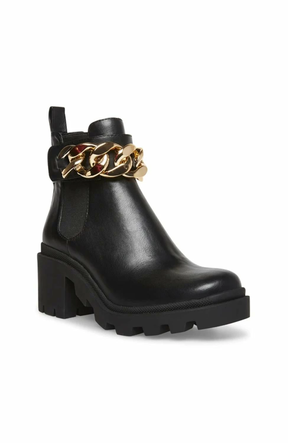 An ultra-functional ankle boot with a touch of fancy flair!AMULET-C dresses up a sturdy lug-soled Chelsea silhouette with a chunky gold tone chain accent.οΏ½οΏ½Vegan leather upper materialMan-made liningMan-made sole2 inch heel height11 inch shaft circumference4.5 inch shaft height