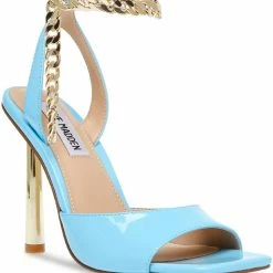 Express your individuality in this daring and trendy Bouyant sandals by Steve Madden. This shoe is crafted with lucite and synthetic uppers with ornament details. It features a classic t-strap that adds flare to any look. The heel height measures 3.5″ and features synthetic sole.