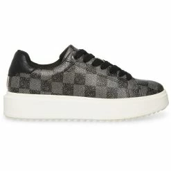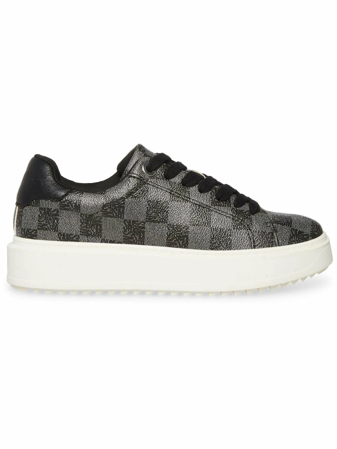 Express your individuality in an effortless blend of cool and edgy designed sneakers by Steve Madden. This shoe is crafted with leather uppers and synthetic lining. It features a contrast accent at the counter for a chic-street look, a lace-up closure and rubber outsoles