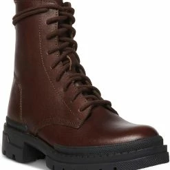Make the sidewalk your personal runway in the Jamisyn combat boot by Steve Madden. Leather uppers and linings. A classic design with a lace-up construction and lug sole. Padded footbed for comfort with rubber outsoles.
