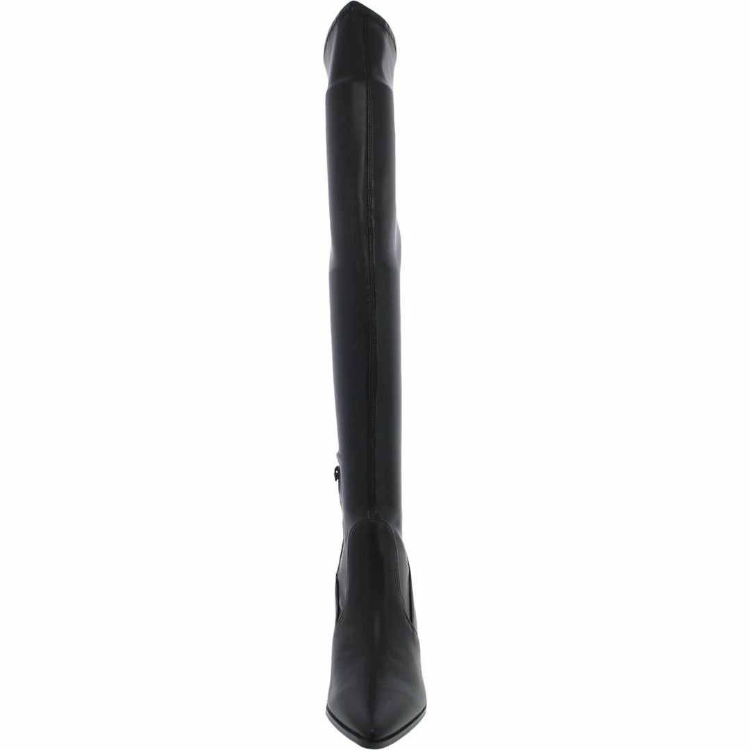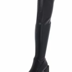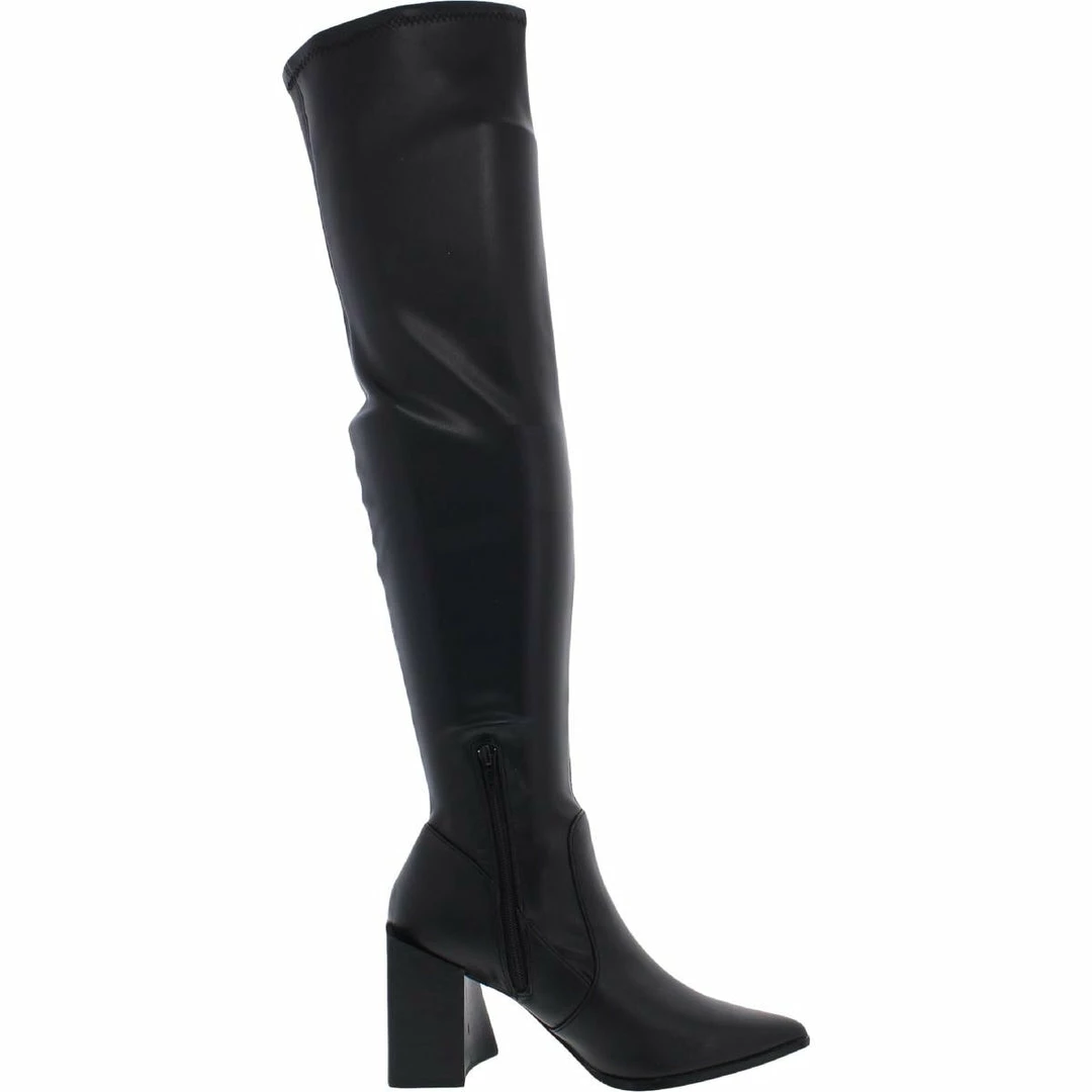 Stand out in the Tanzee leather over the knee boots by Steve Madden. Leather uppers with a chunky block heel. This high style offers eye catching drama and effortless style. Padded footbed for comfort with synthetic outsoles.