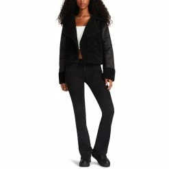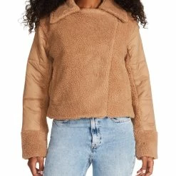 Add a little drama to your look in this mixed media faux fur coat by Steve Madden. Made with 100% Nylon and filled with 100% Polyester. The soft fabric and quilted construction will pack in the heat on chilly days. It features an oversized notch collar and a short cut with a button closure. This coat is guaranteed authentic.