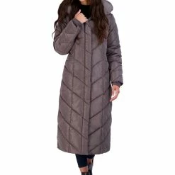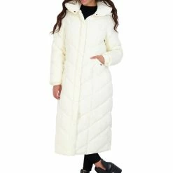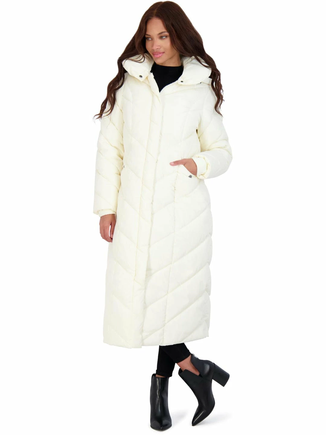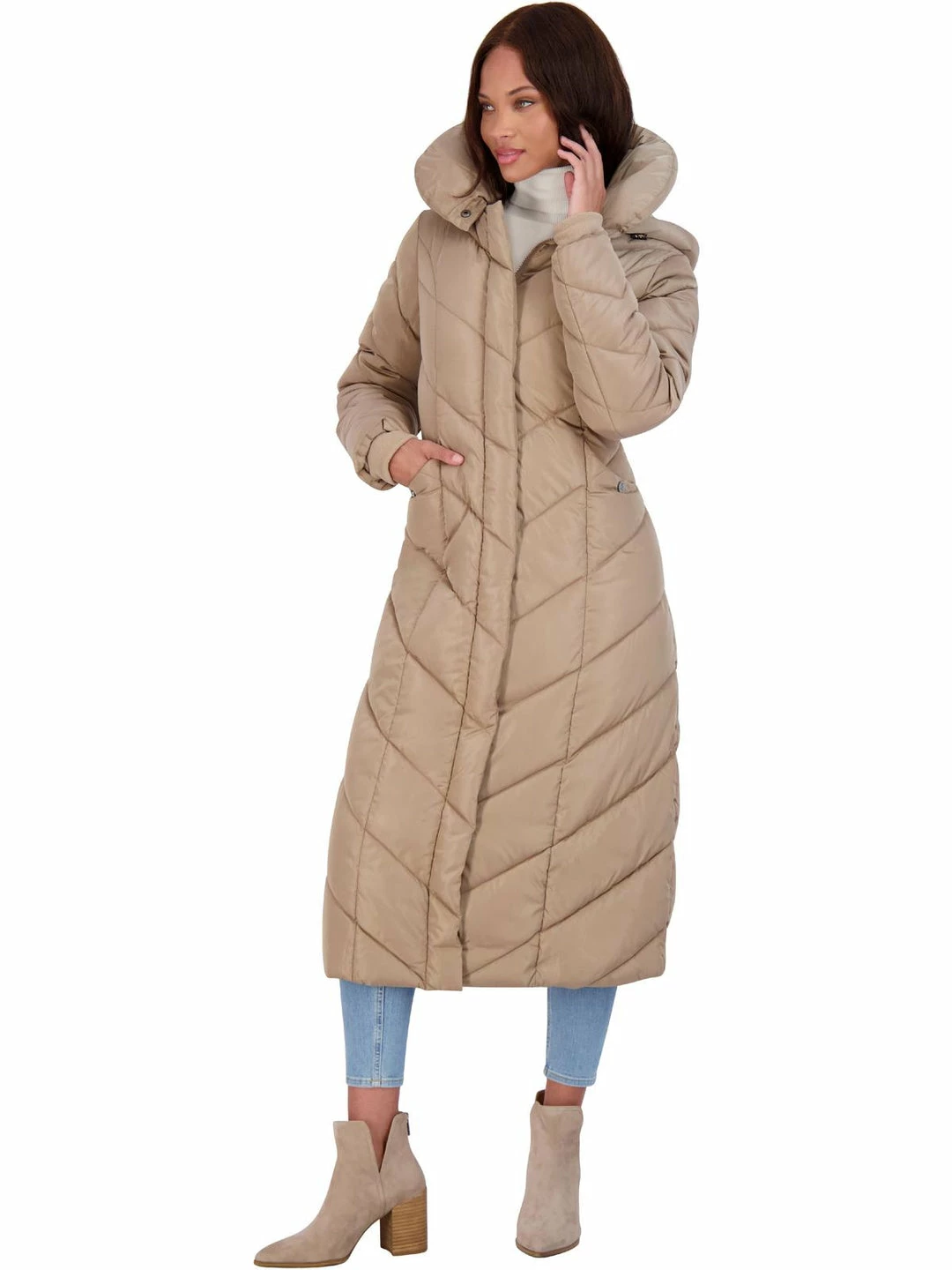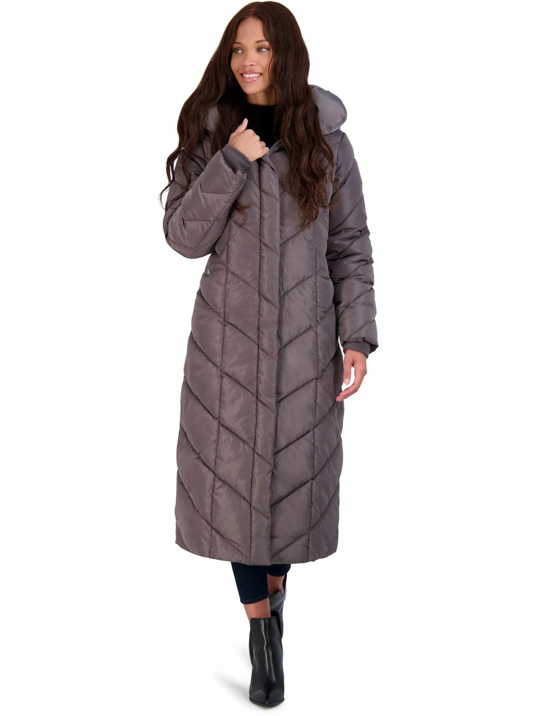 For the fashionista with comfort on her mind, the Steve Madden outerwear collection always delivers with their on-trend designs and extra warming features. This coat’s water resistant materials combined with it’s stylish chevron quilting and fleece lining offer cozy warmth and style all winter long. Removable hood and elegant pillow collar are perfect for mixing up your winter styles. This coat is guaranteed authentic.