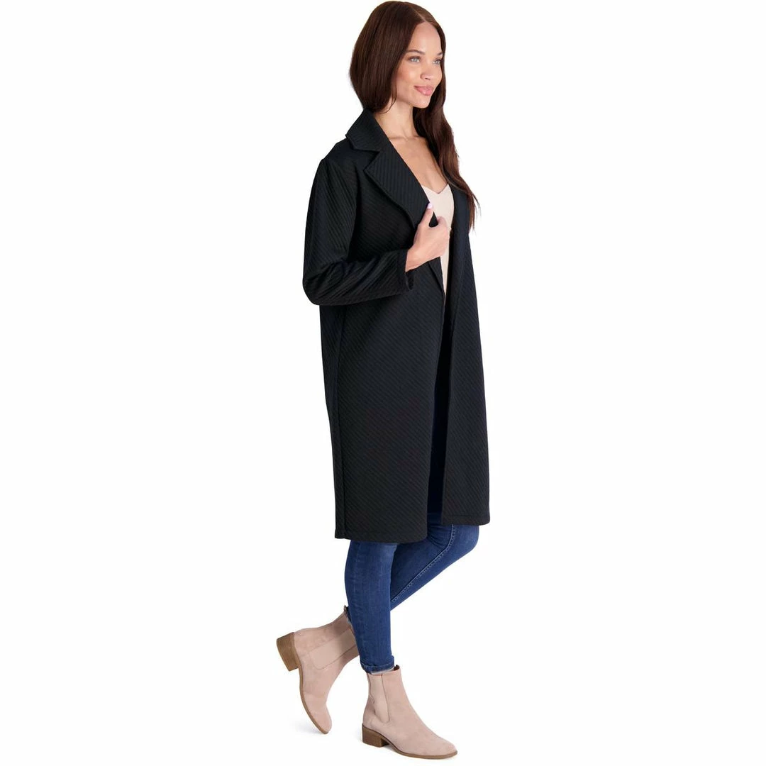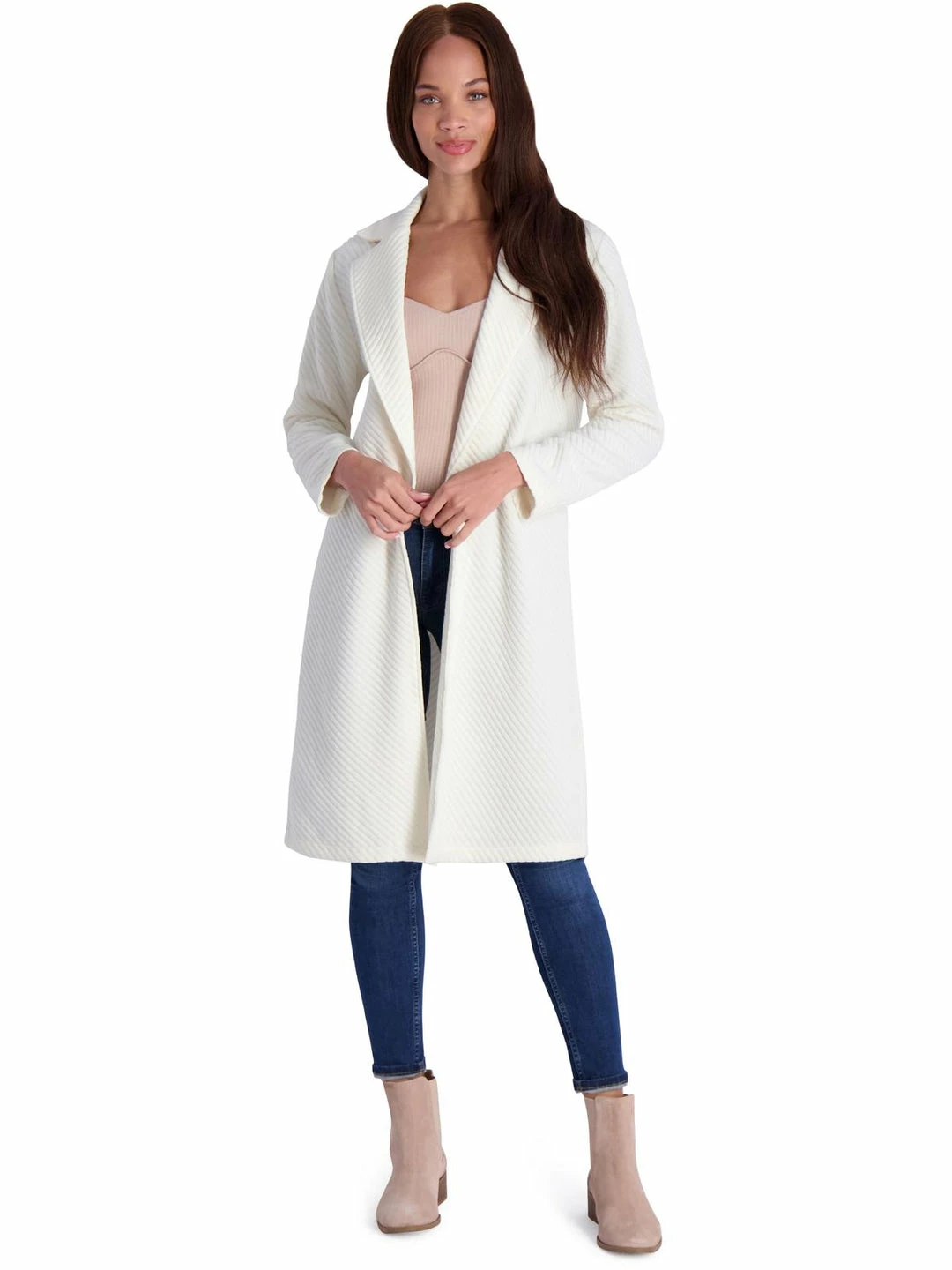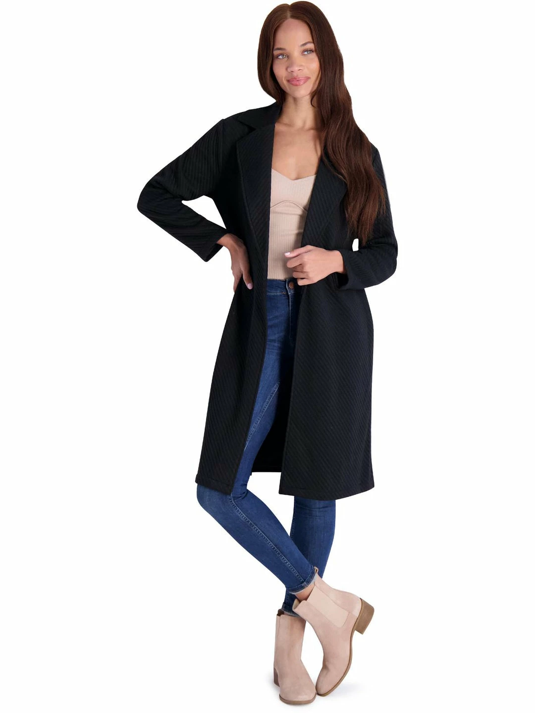 Layer up in style in this ribbed longline duster jacket by Steve Madden. This lightweight jacket offers chic, everyday style for all occasions. This versatile design will layer perfectly with all your favorite ensembles. Dress it up for the office or a night out on the town. It flaunts soft ribbed fabric, a notch collar, and a spacious open front longline design. As one of the most iconic brands in the industry, Steve Madden offers essential pieces that are modern, timeless, and empowering for the everyday woman.