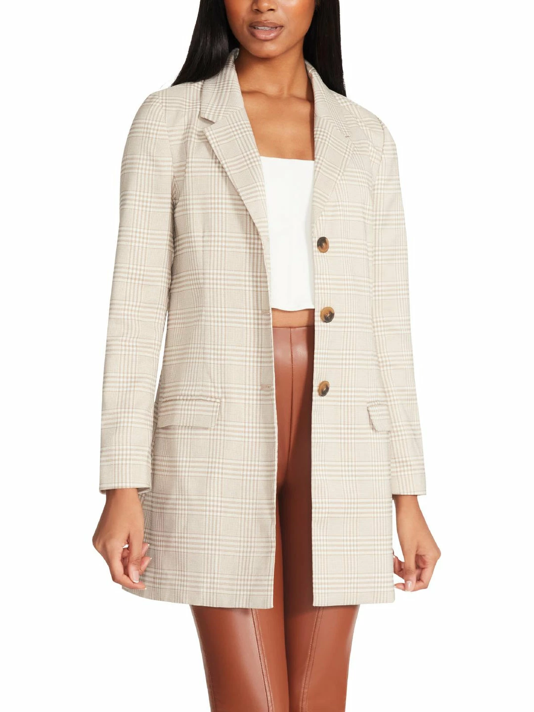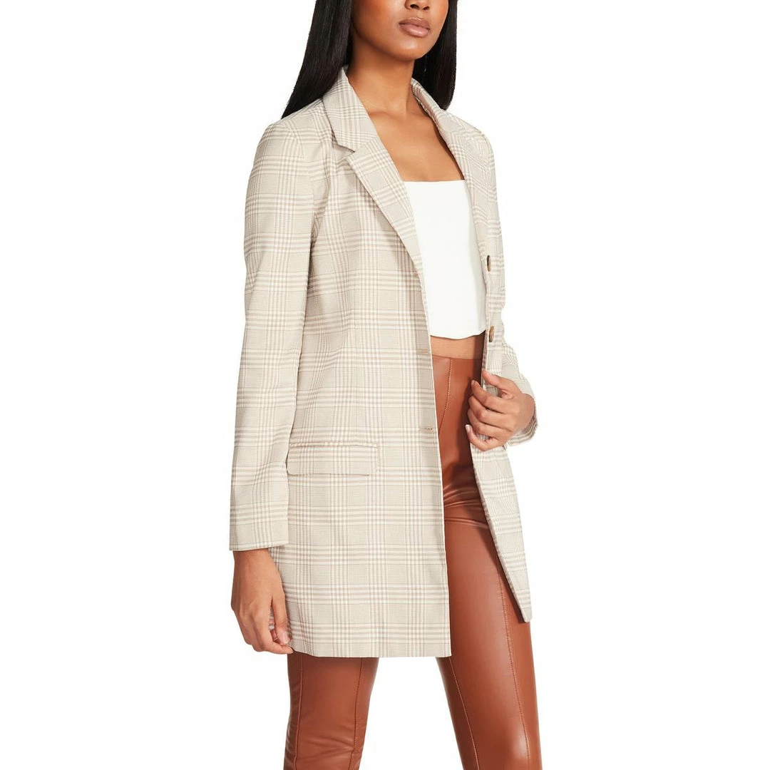 This plaid print blazer by Steve Madden will elevate all your favorite looks. Made with 100% Polyester. This jacket features two front pockets and a chic notch collar. It’s versatile design offers effortless, desk to dinner style with button closures. This blazer is guaranteed authentic.
